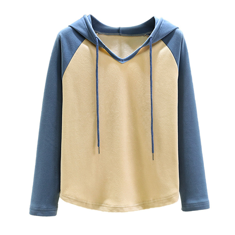 德绒插肩帽衫女冬连帽卫衣