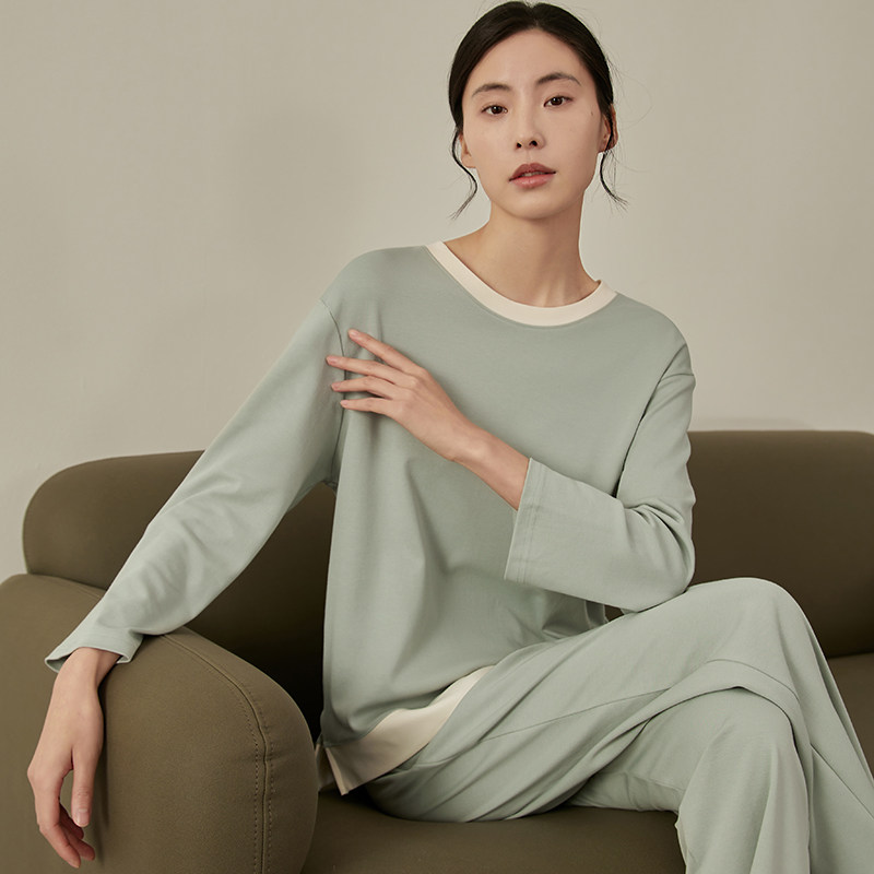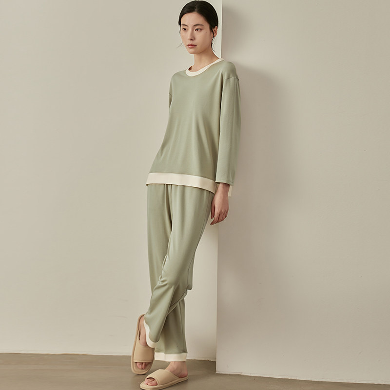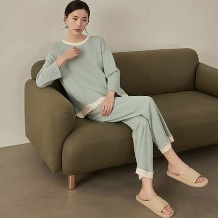 春夏季睡衣女士长袖长裤套装圆领套头夏天薄款家居服两件套可外穿