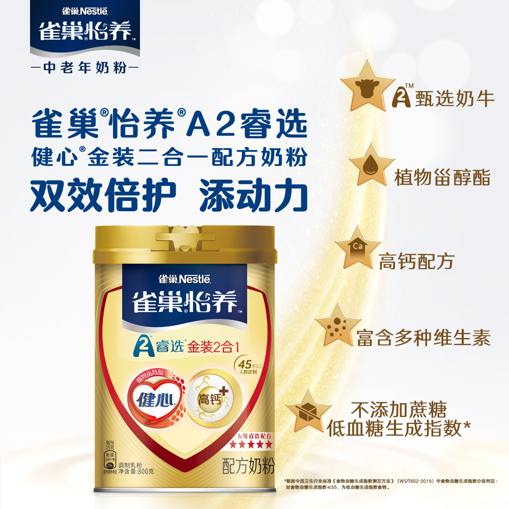 雀巢怡养金装成人中老年健心高钙奶粉800g*2罐无蔗糖速溶营养早餐
