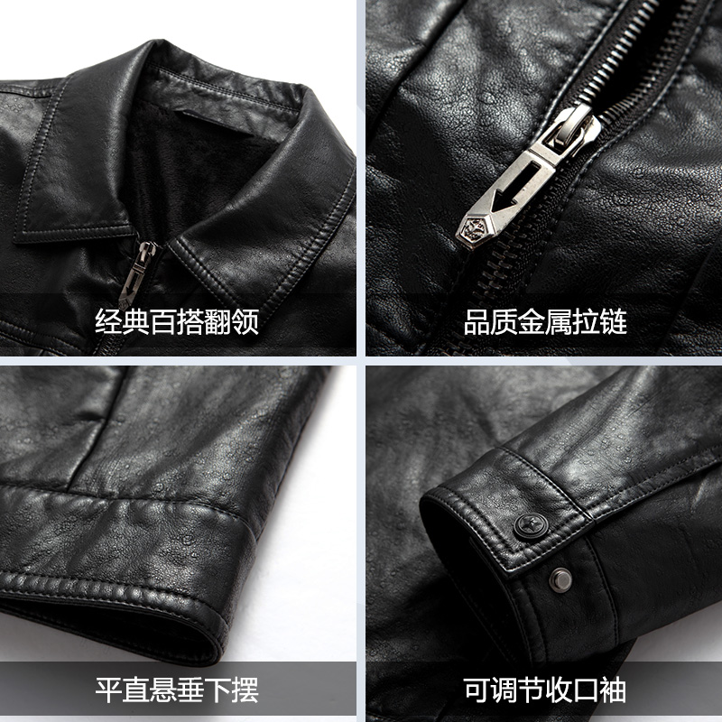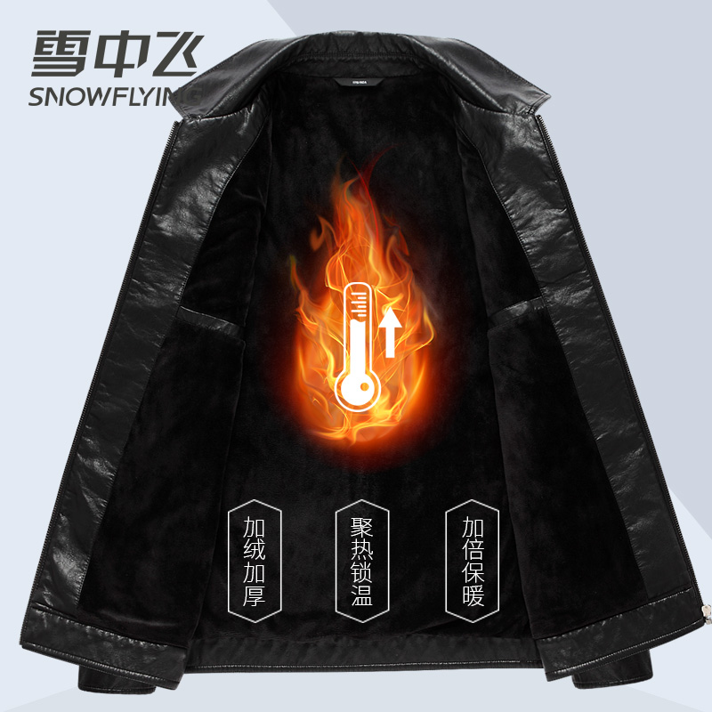 雪中飞皮夹克男春秋短款防风保暖男装外套2025新款黑色爸爸装皮衣