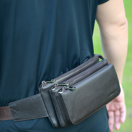 MENNYO腰包真皮包头层牛皮钱包背包手机包父亲节礼物送爸爸送长辈