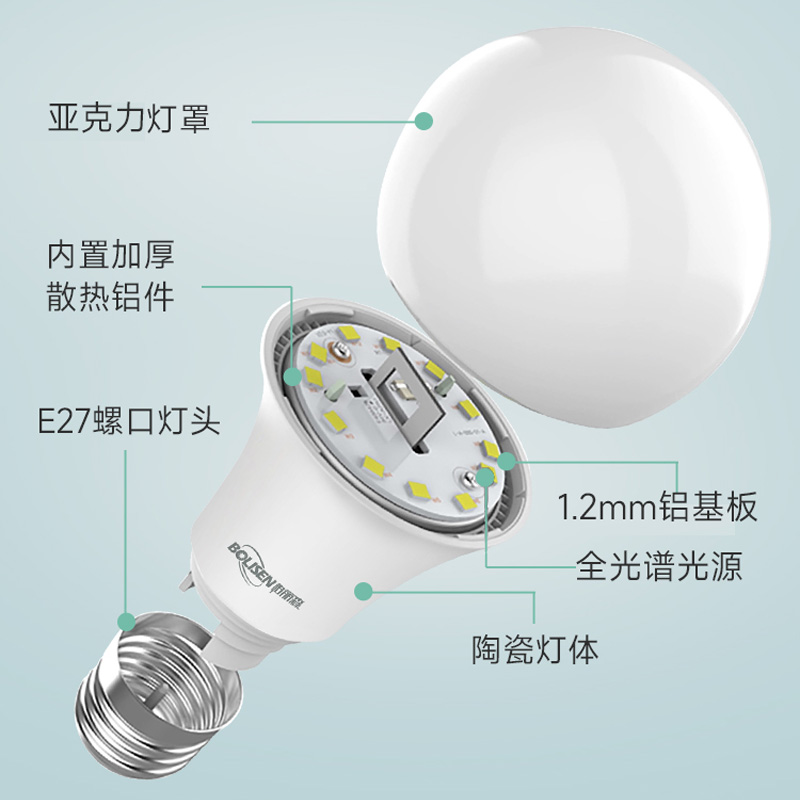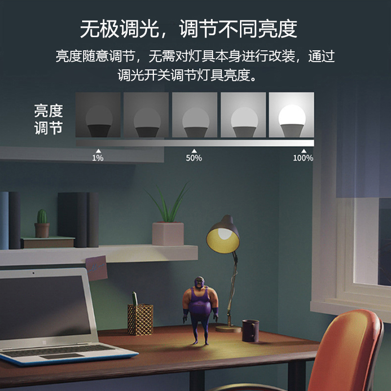 LED可控硅旋钮无极调光全光谱高显色无频闪低蓝光护眼阅读球泡灯
