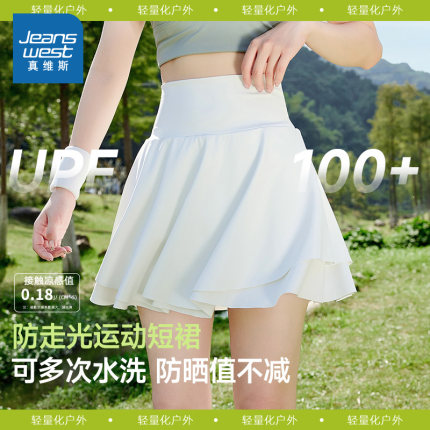 KMV真维斯白色网球裙2025夏新款跑步健身防晒防走光高腰运动短裙