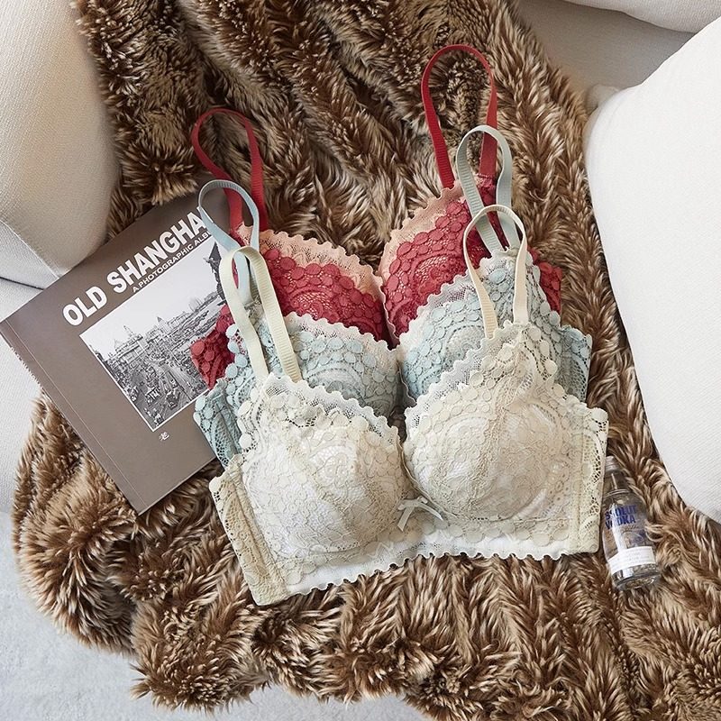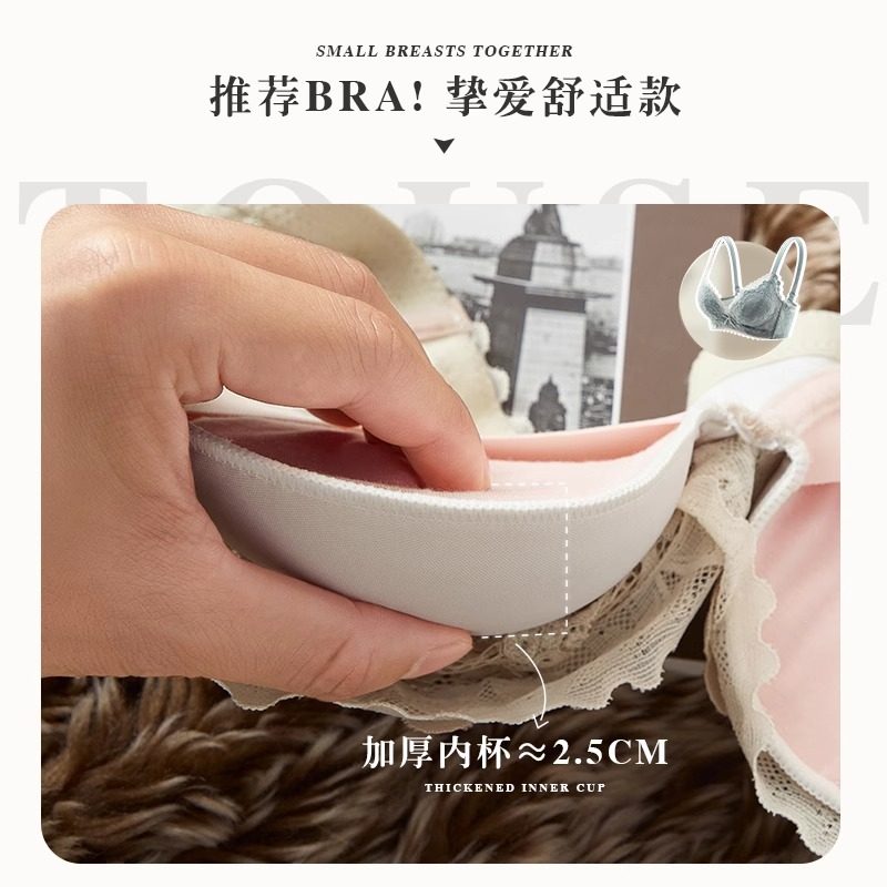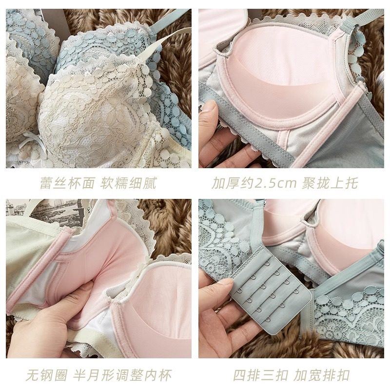 内衣女士聚拢平小胸无钢圈收副乳防下垂调整型性感蕾丝文胸罩套装
