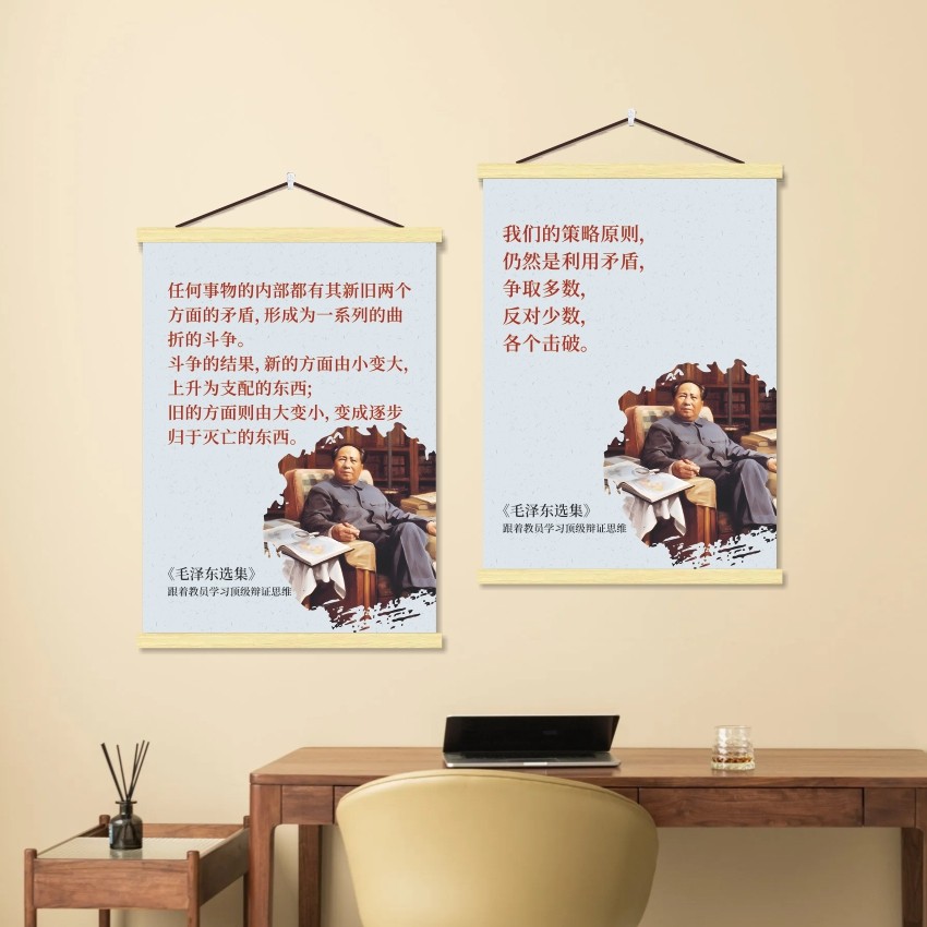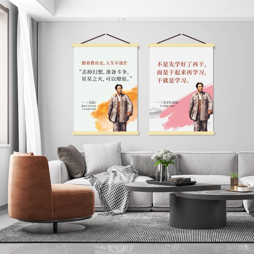毛泽东选集语录挂画挂图客厅书房毛主席伟人励志海报墙贴纸卷轴画