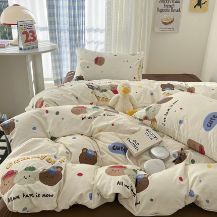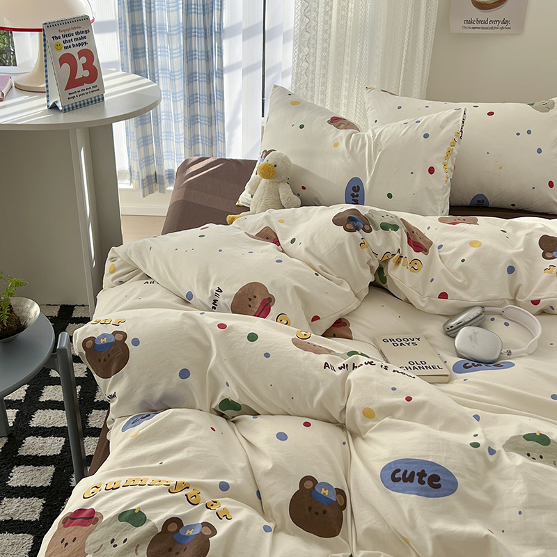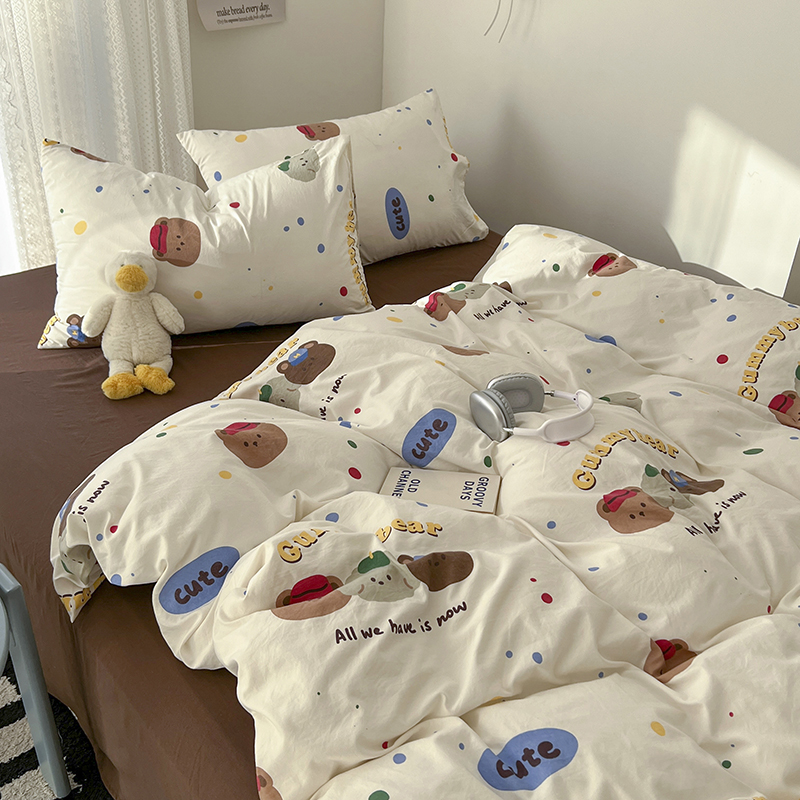 ins卡通小熊四件套儿童可爱水洗棉被套床单人宿舍三件套床上用品4