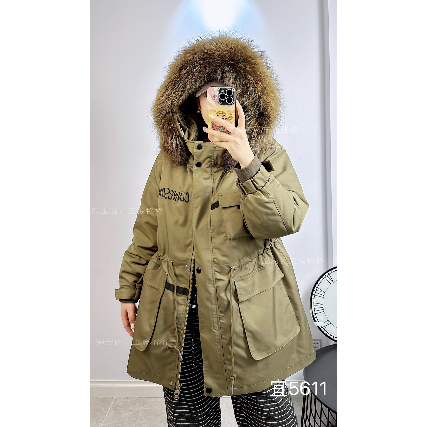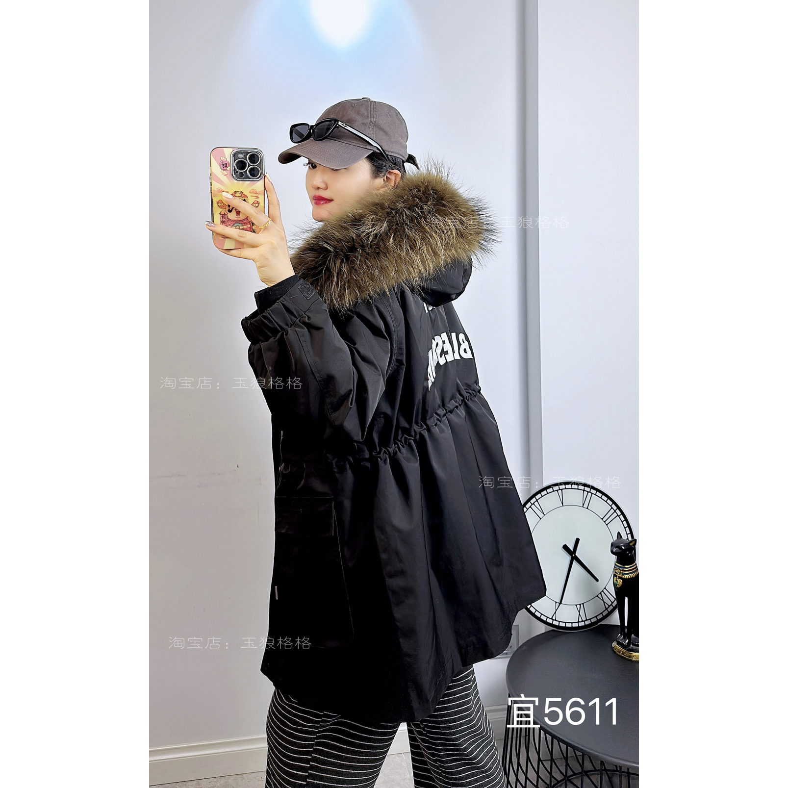 宜语析5611冬季加大码羽绒服女 190斤胖妹mm连帽可拆卸毛领派克服