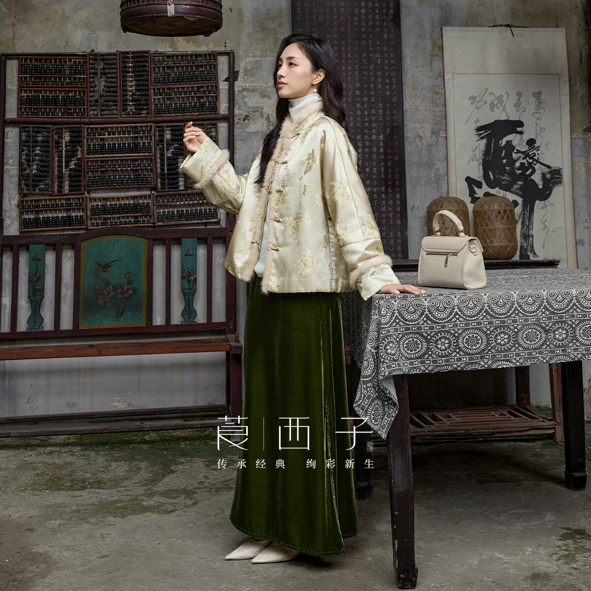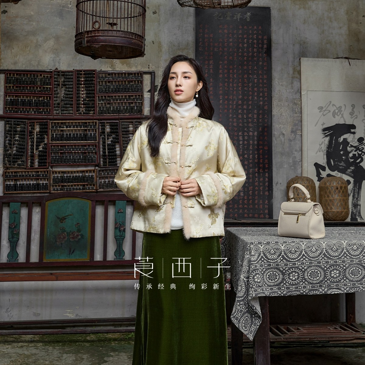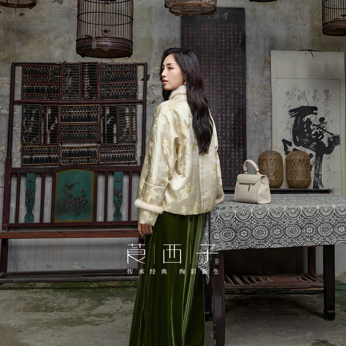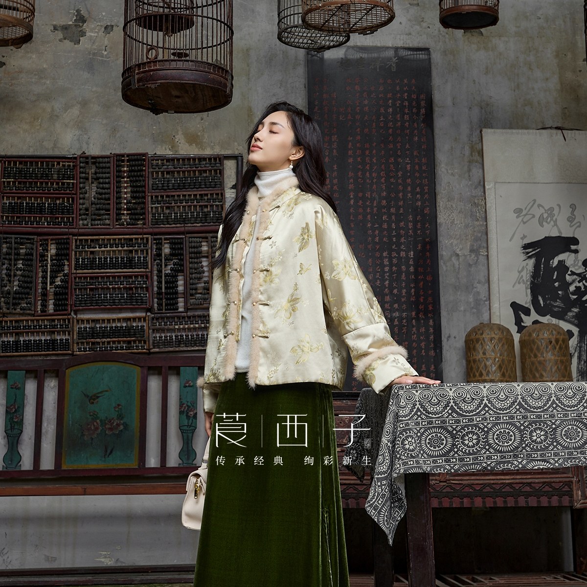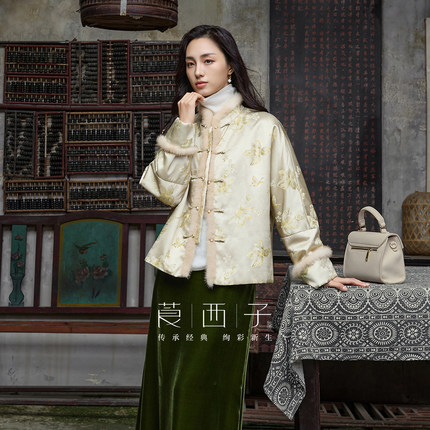 【100桑蚕丝填充】莨西子新中式国风水貂毛棉服外套女复古棉衣冬