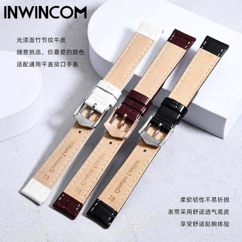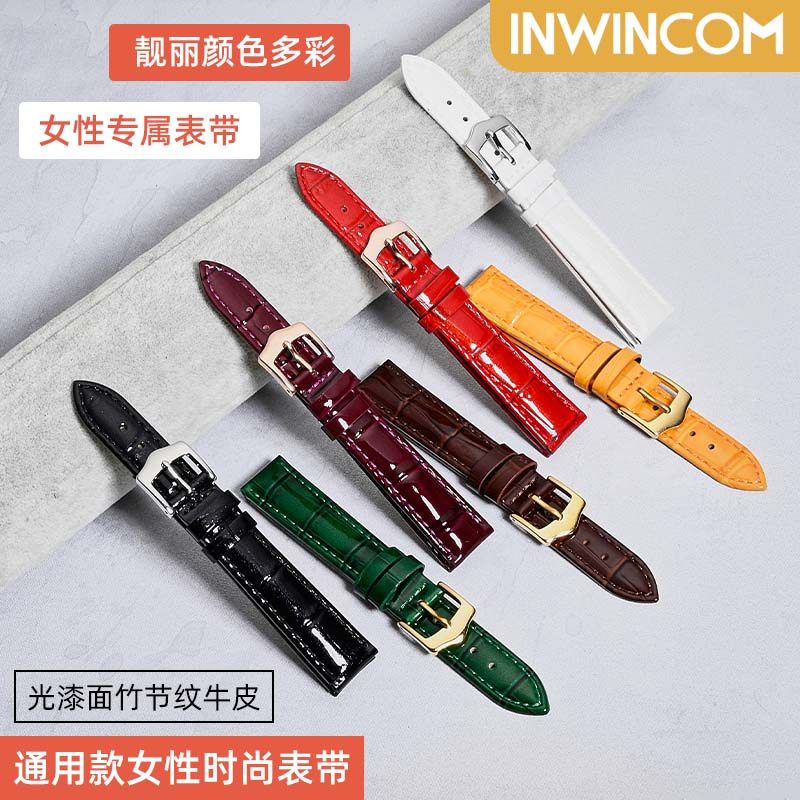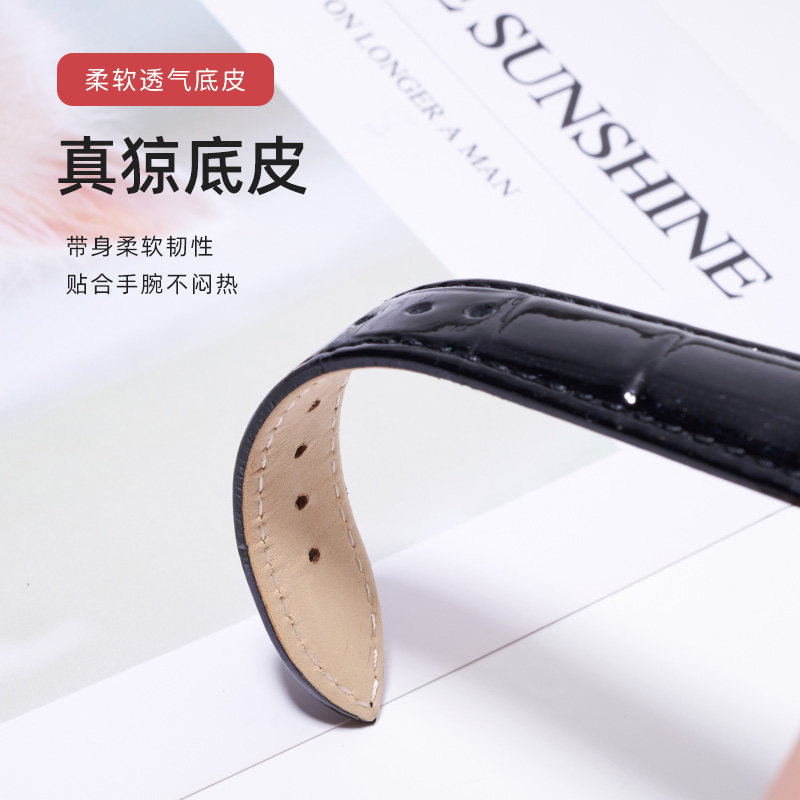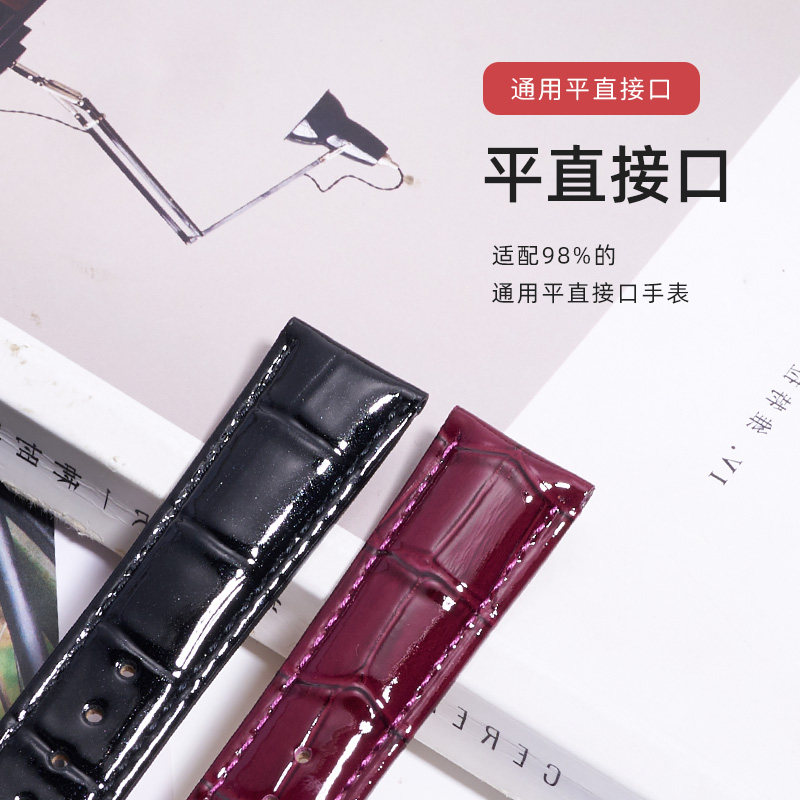 漆皮表带适配飞亚达四叶草天梭杜鲁尔芙丽铁达时手表带真皮女16mm