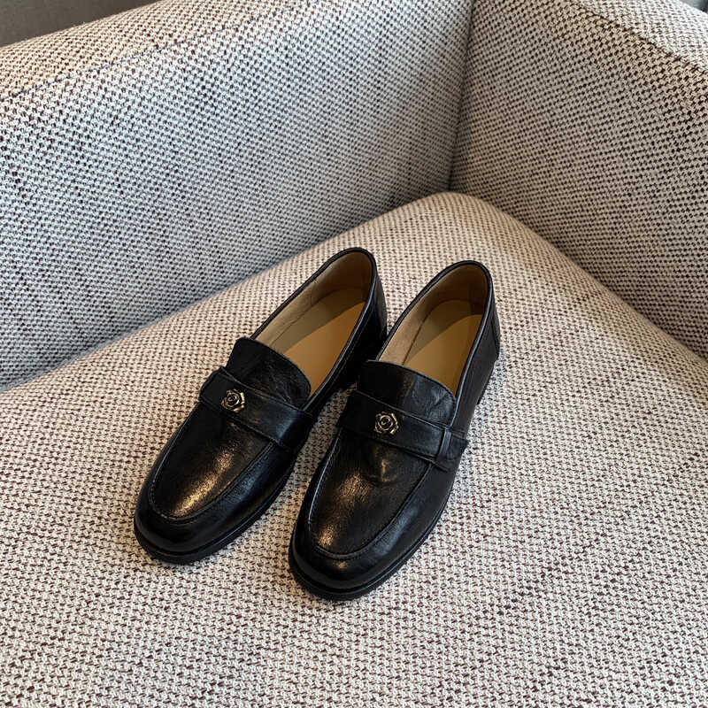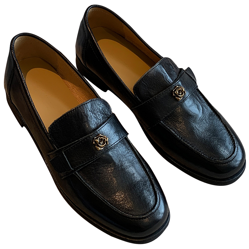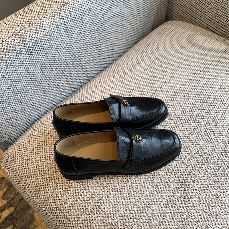 【TFM】羊皮~2025春季新款高品质复古山茶花通勤百搭平底乐福鞋女