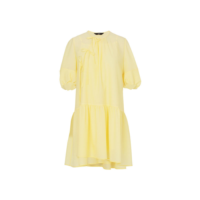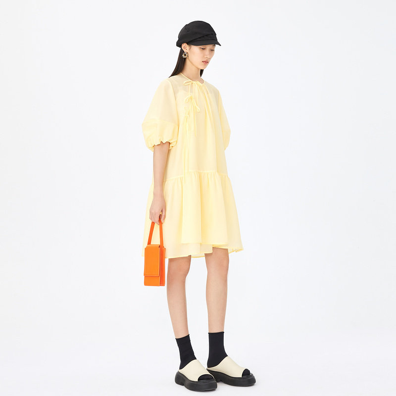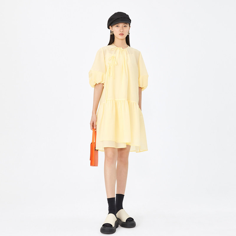 AUM噢姆夏季醋锦微绉新中式斜门襟绑带连衣裙