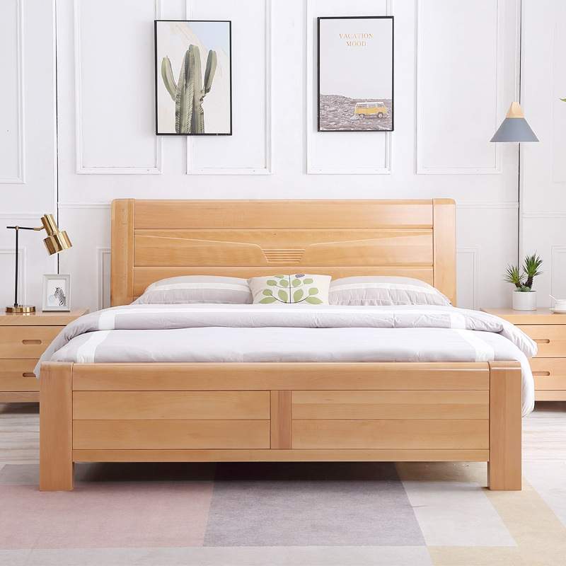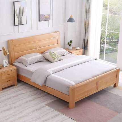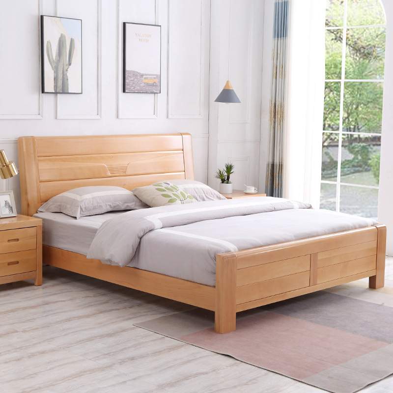 全实木床榉木双人原木1米8主卧室1.5储物高箱床中式现代简约家具