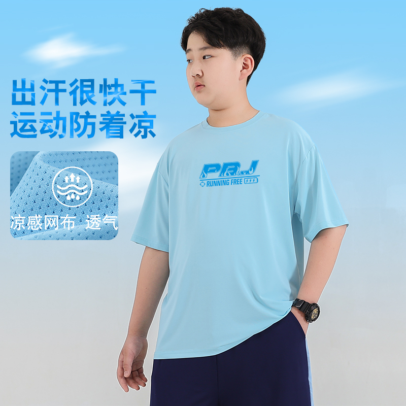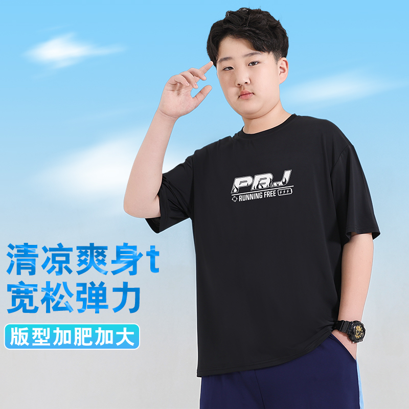 胖童短袖t恤冰丝速干新款胖男孩儿童体恤大码胖童装男童加肥加大
