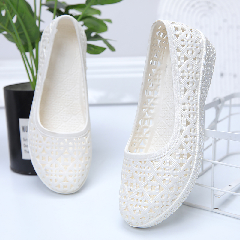 包头洞洞凉鞋女夏休闲上班舞蹈平底护士妈妈防滑塑胶透气软底外穿