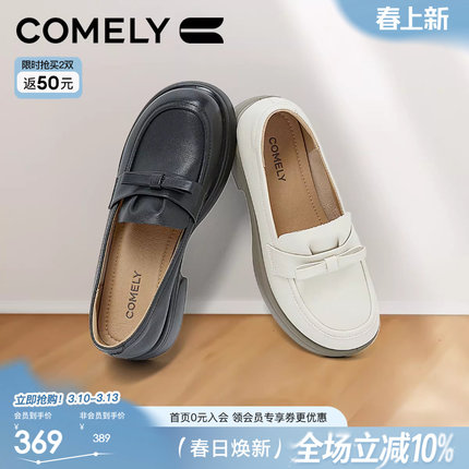 康莉乐福鞋女低跟春季新款牛皮百搭蝴蝶结小皮鞋商场同款舒适软底