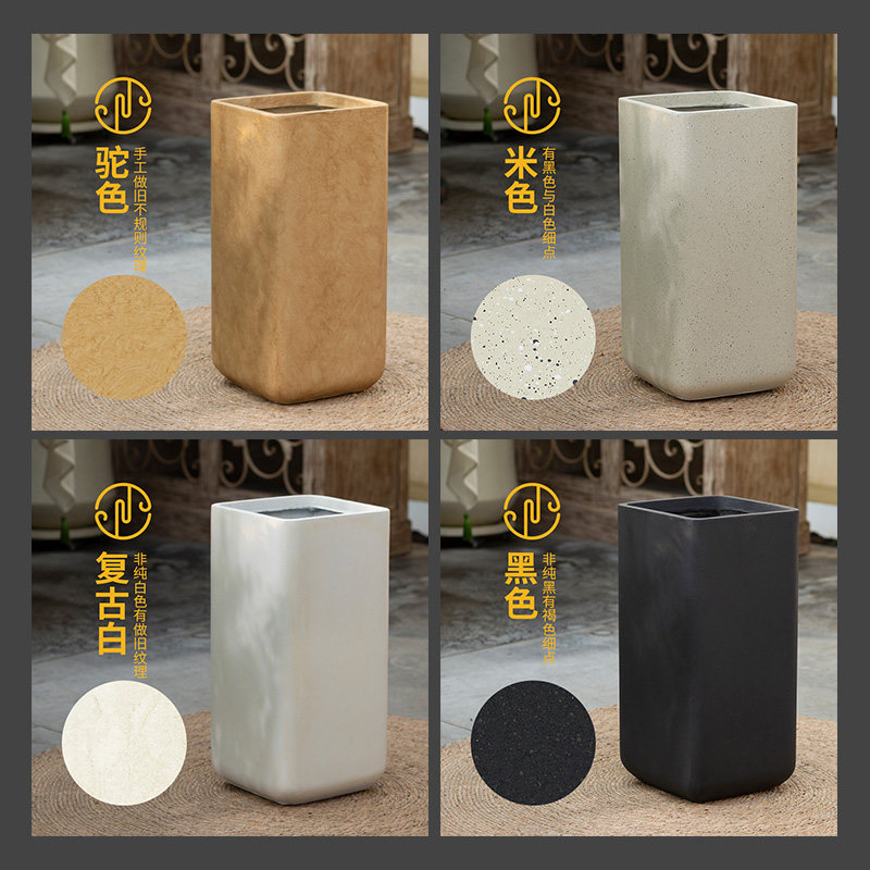 奶油风方形落地花盆高款镁泥水泥盆虎皮兰简约客厅户外轻奢高级感
