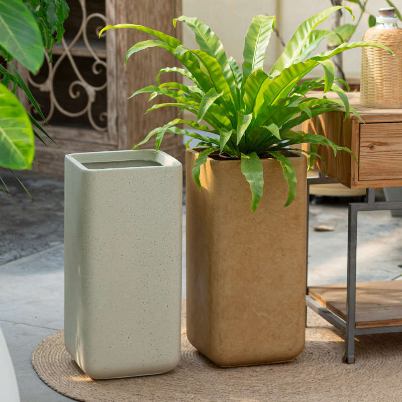 奶油风高方形镁泥花盆设计师推荐