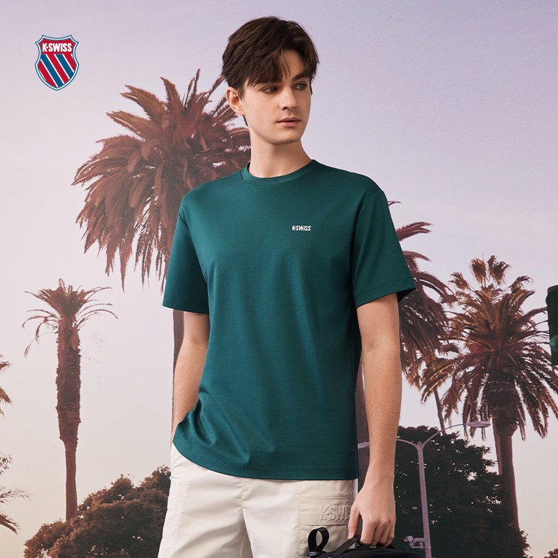 KSWISS盖世威T恤男 夏季透气舒适百搭潮流印花运动微弹短袖109868