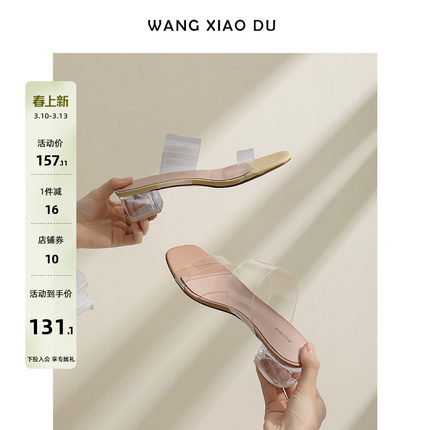 【王小毒】许愿水晶●高跟拖鞋女夏外穿新款一字带透明凉拖女粗跟