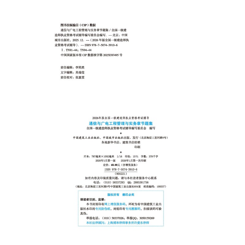 2026一建题集--通信与广电工程管理与实务章节题集2026年版全国一级建造师执业资格考试辅导电信通信中国城市出版社