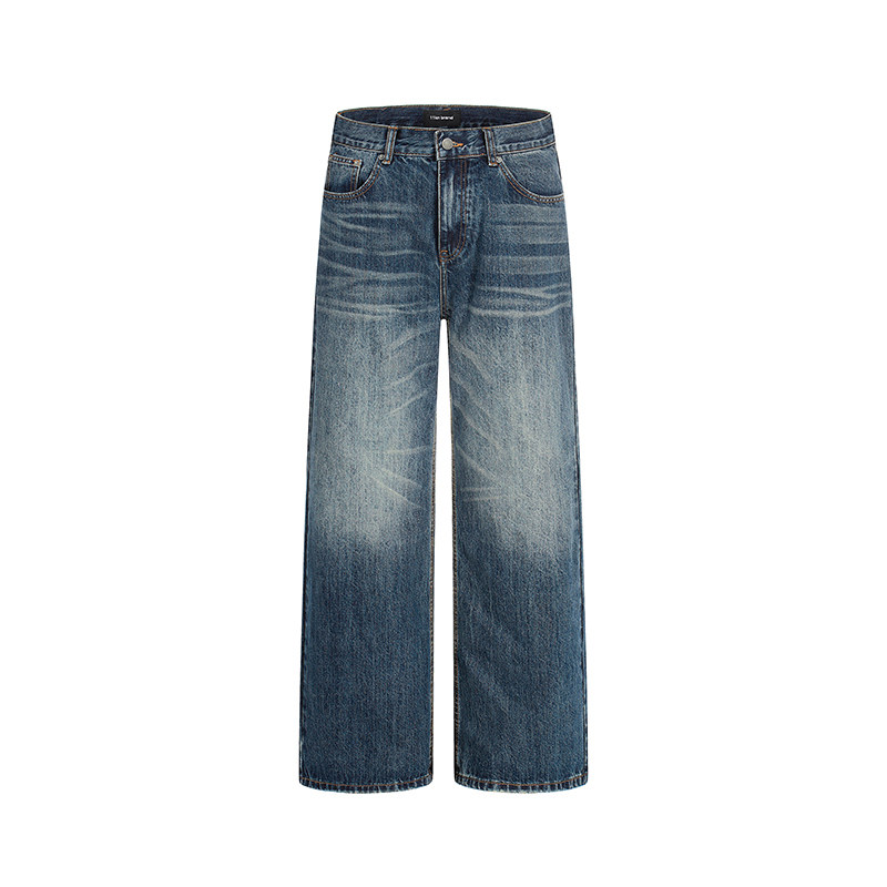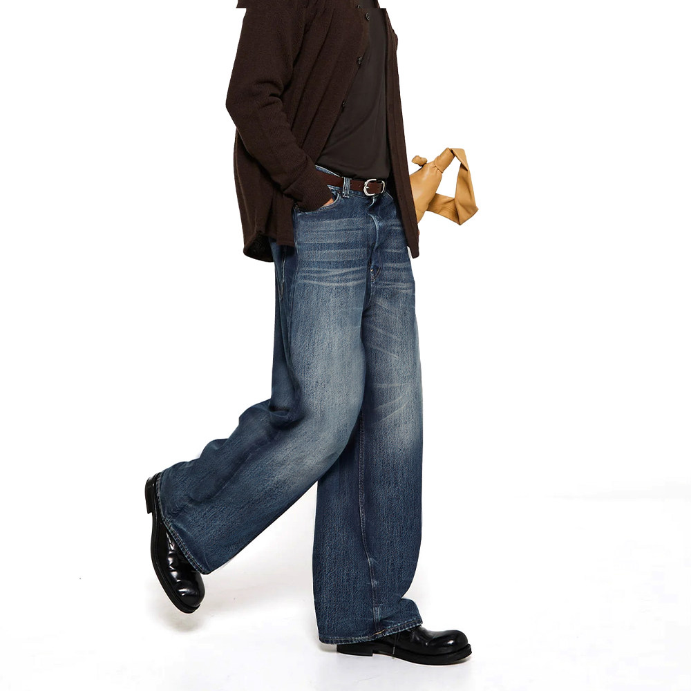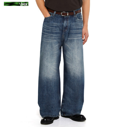 IREX幽魂深色水洗竹节蓝baggy版型A字牛仔裤男女阔腿做旧直筒长裤