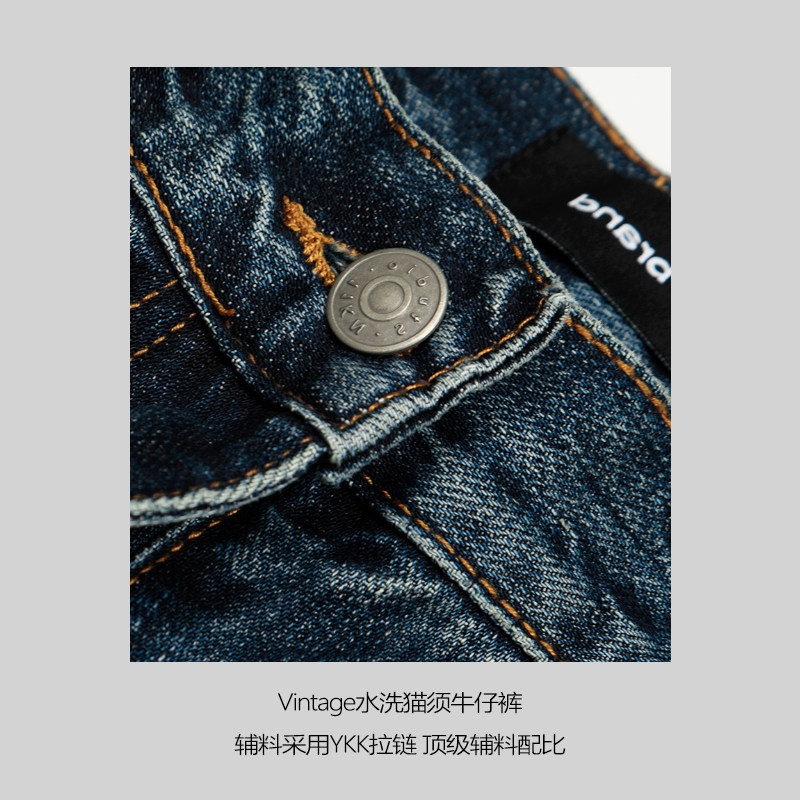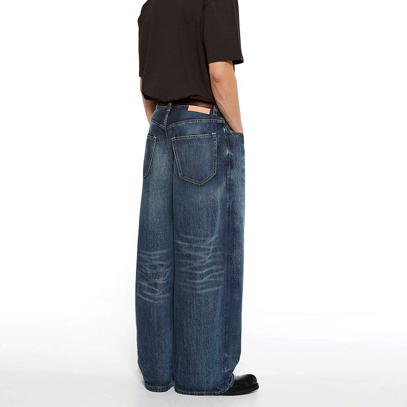 幽魂特深竹节蓝水洗baggy牛仔裤
