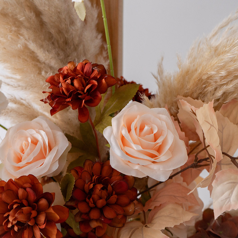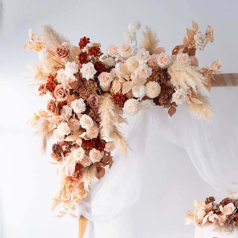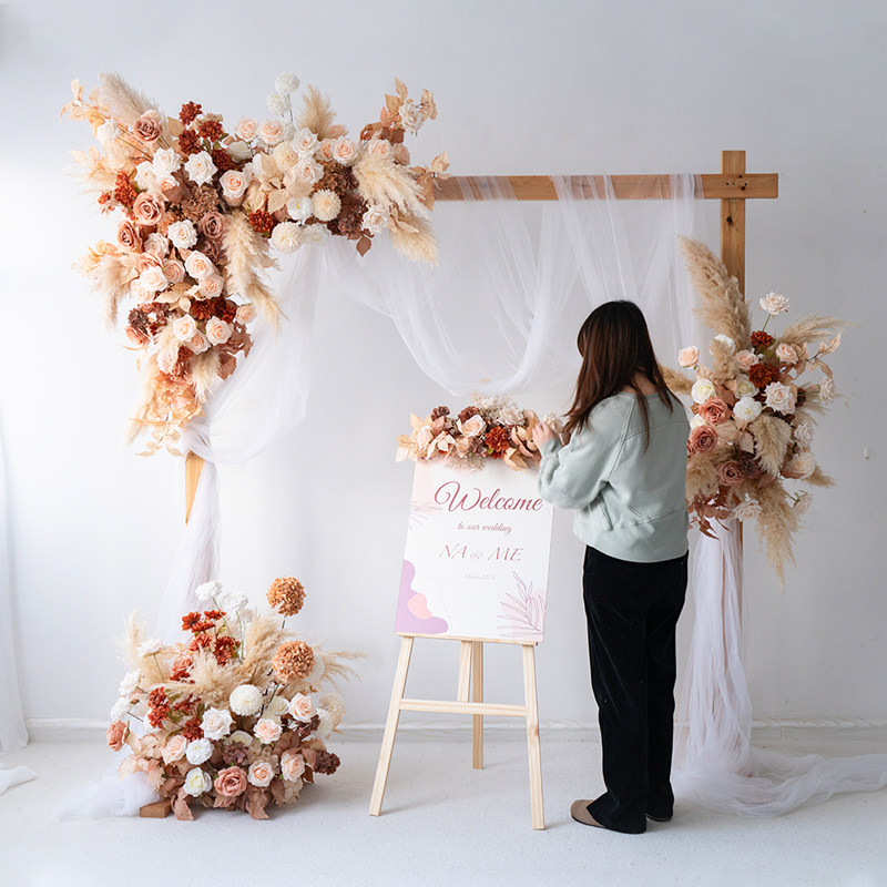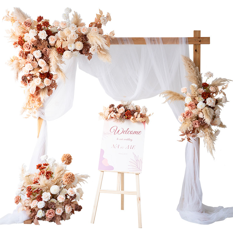 欧式深香槟色芦苇花艺拱门套装 定制婚礼背景布置仿真花假花装饰