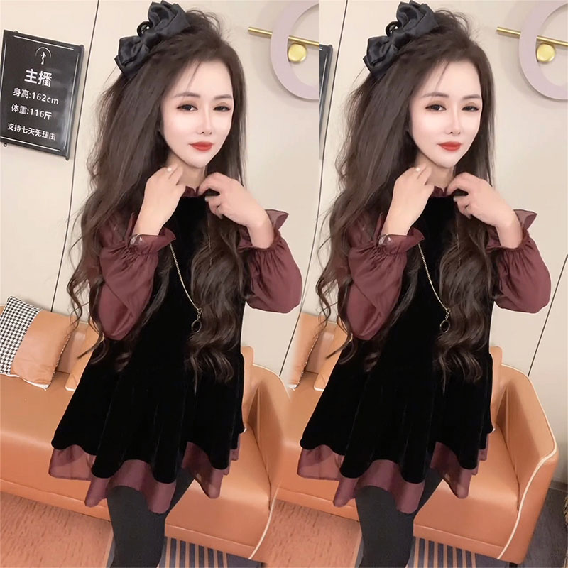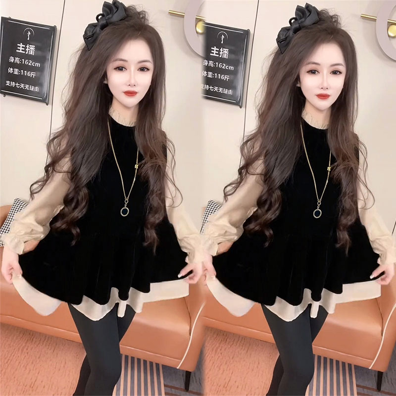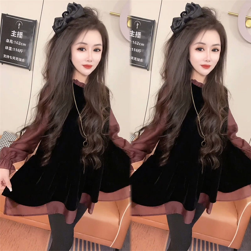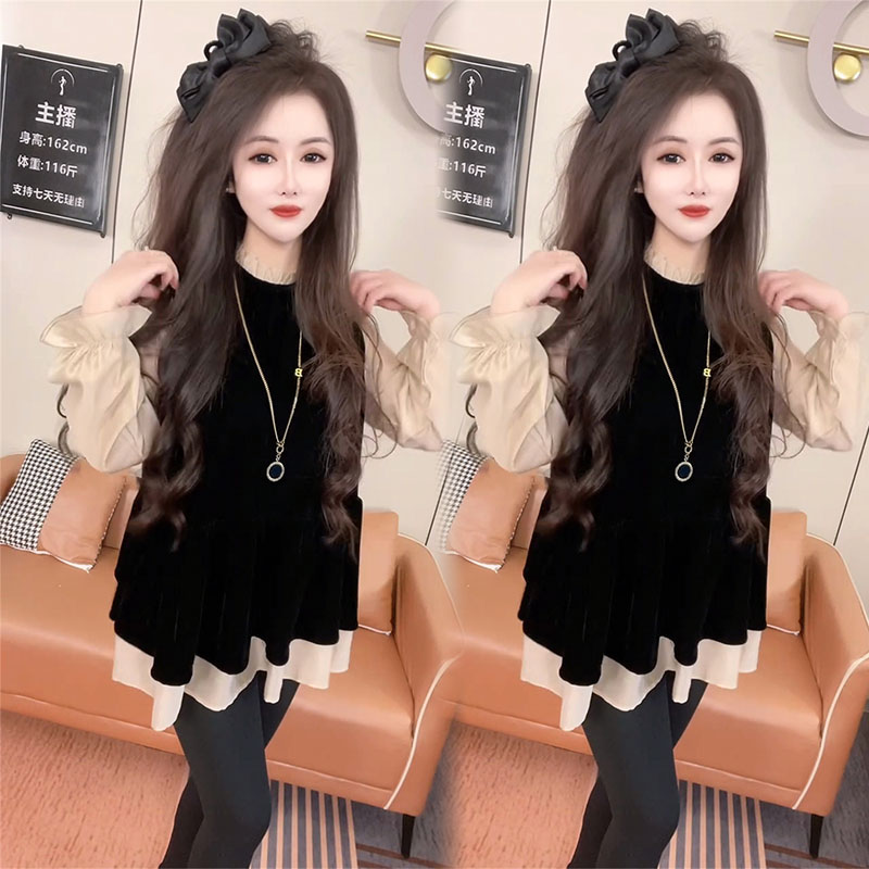 欧货气质荷叶边拼接衬衫女2025春秋设计感减龄宽松显瘦中长款上衣
