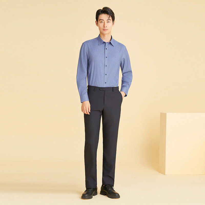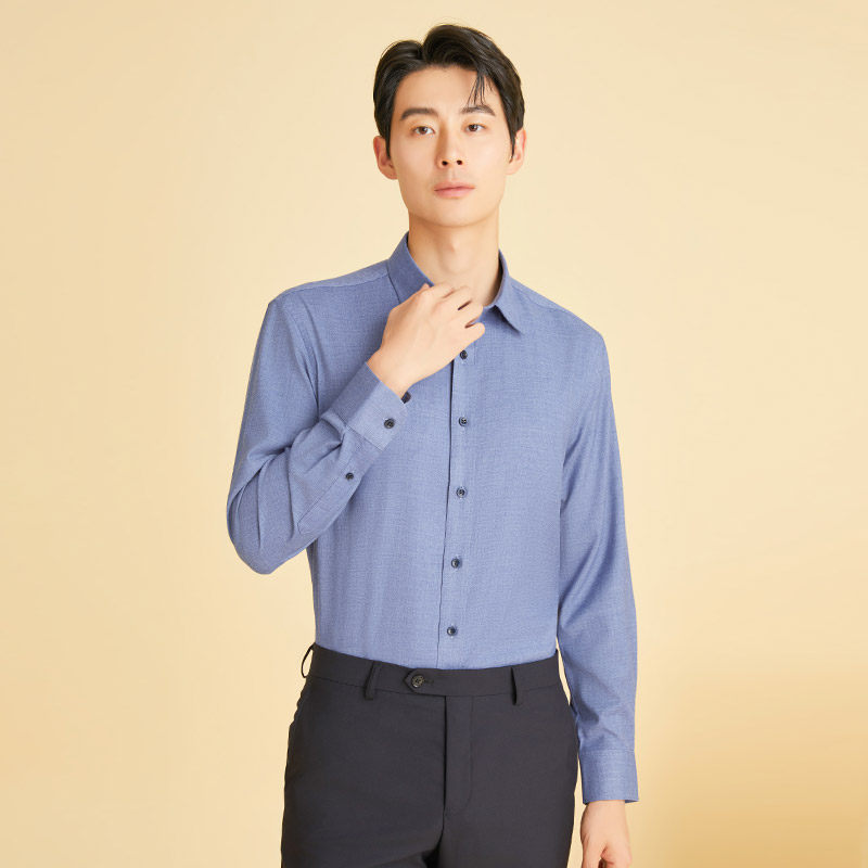 乔治白秋冬季男士长袖衬衫休闲修身微弹衬衣偏厚纯色上衣