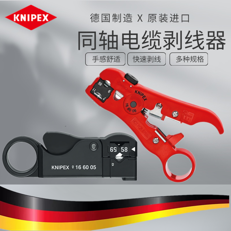 德国凯尼派克KNIPEX剥线器同轴电缆剥线工具剥皮钳护套线扒皮
