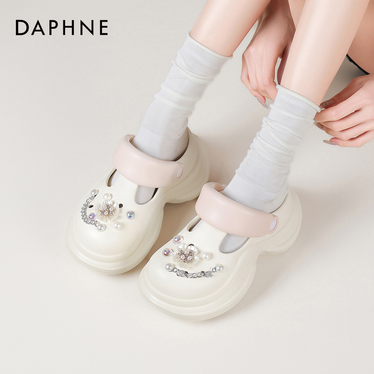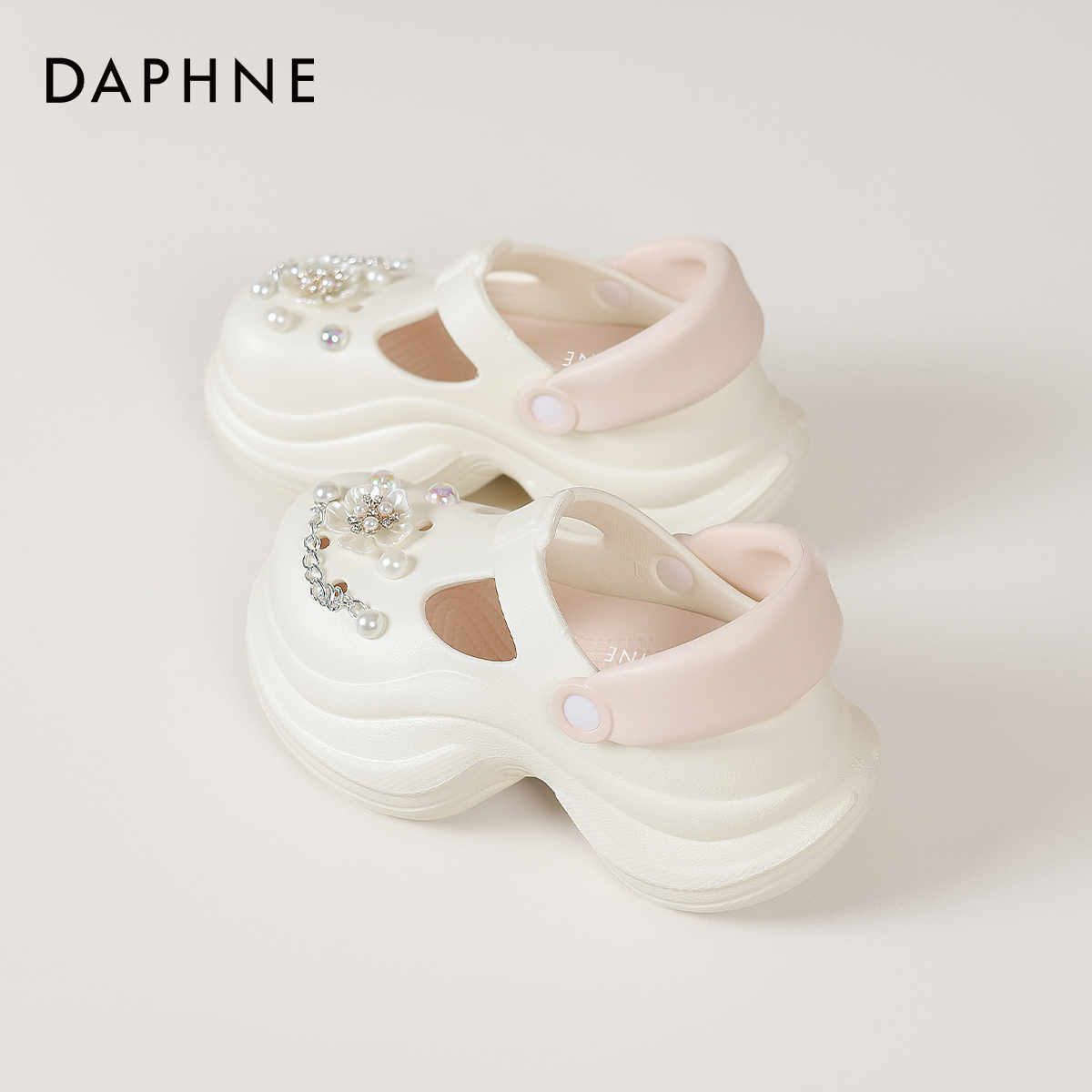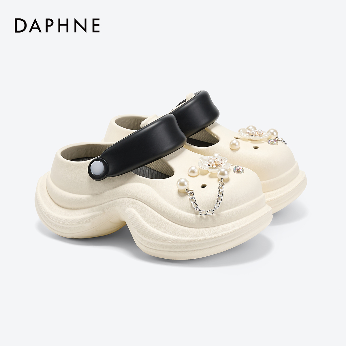 达芙妮厚底洞洞鞋女款2025新款包头拖鞋女夏外穿半拖凉鞋沙滩女鞋