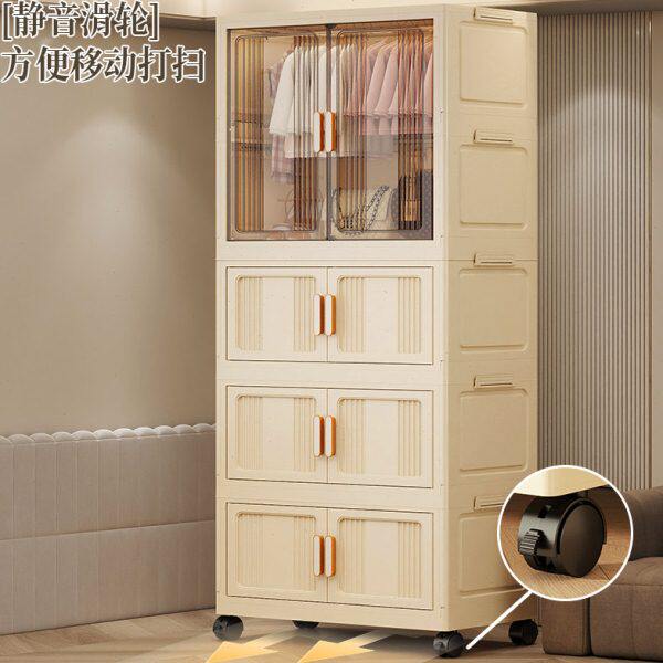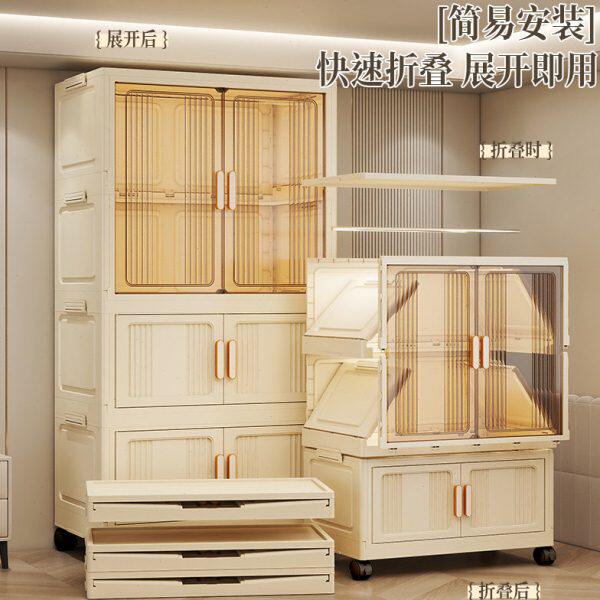 奶油风折叠式儿童宝宝衣柜简易家用多层塑料收纳柜卧室婴儿小衣橱