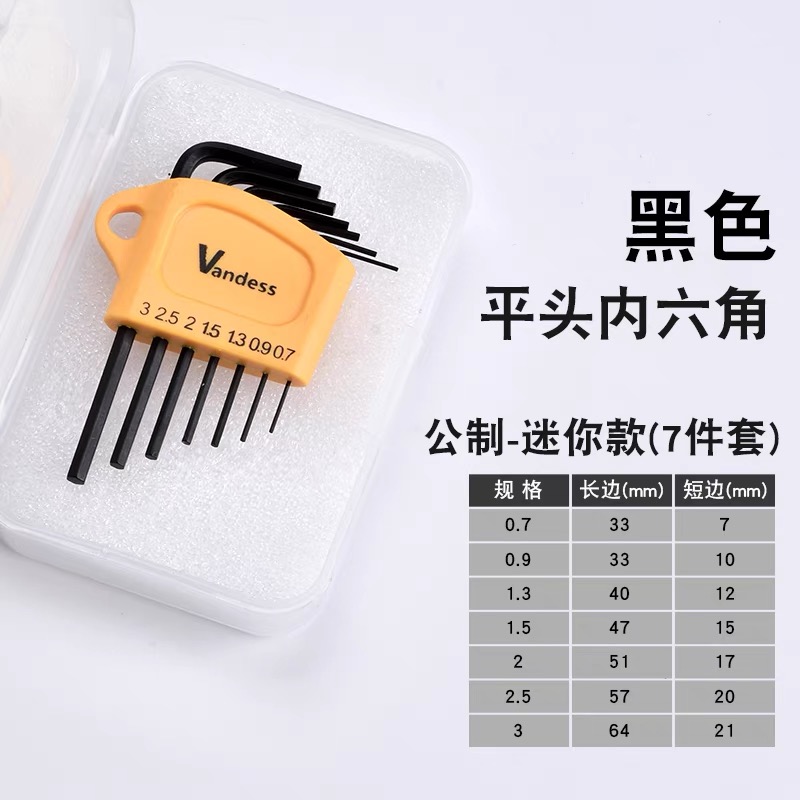 0.7-10mm发黑加硬迷你小内六角扳手套装钟表玩具拧螺丝维修工具