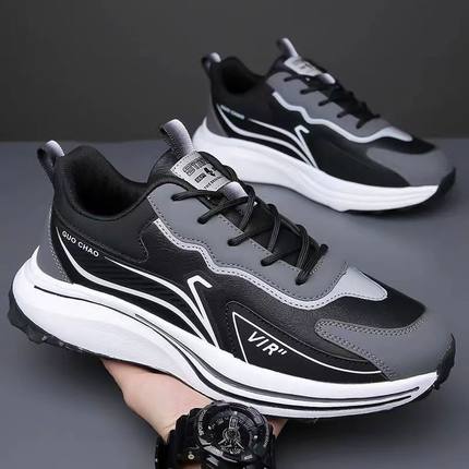 2024年冬男鞋舒适软底潮流男士运动休闲鞋网面透气气垫跑步老爹鞋