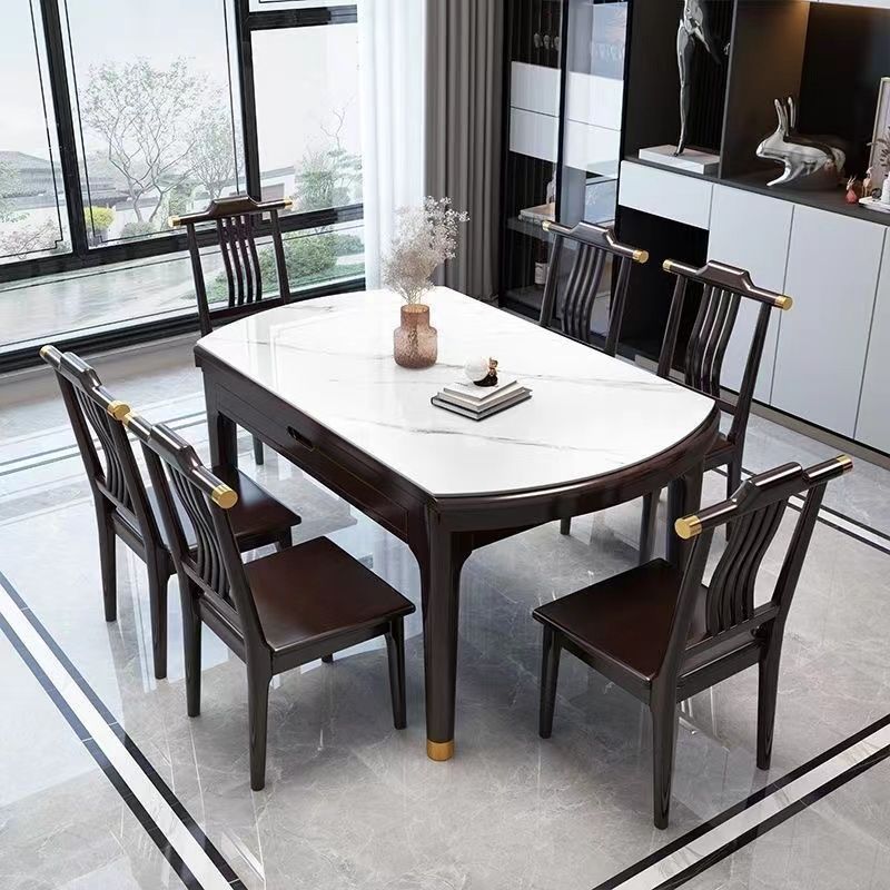 新中式岩板餐桌椅组合实木小户型家用伸缩折叠方圆两用多功能饭桌