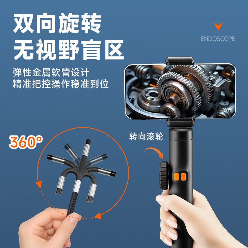 CAKI连手机工业内窥镜360转向镜头汽修保养空调机械维修管道检查