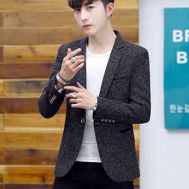 新款春秋男士暗纹小西装韩版修身外套男青年潮流西服商务休闲上衣