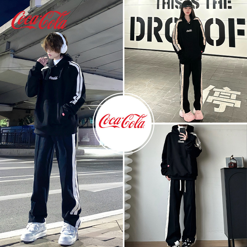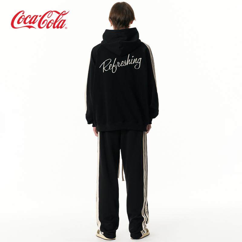 Coca-Cola可口可乐垂感休闲运动裤美式花体字母刺绣连帽卫衣套装