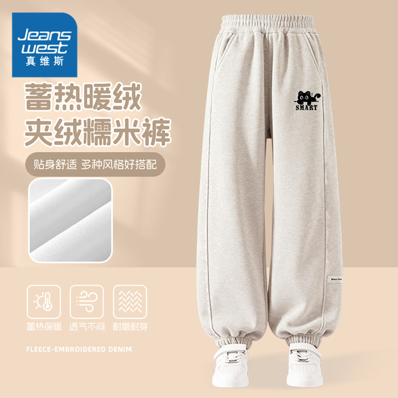 真维斯童装女童裤子2025新款冬小女孩冬季一体绒长裤儿童加绒卫裤
