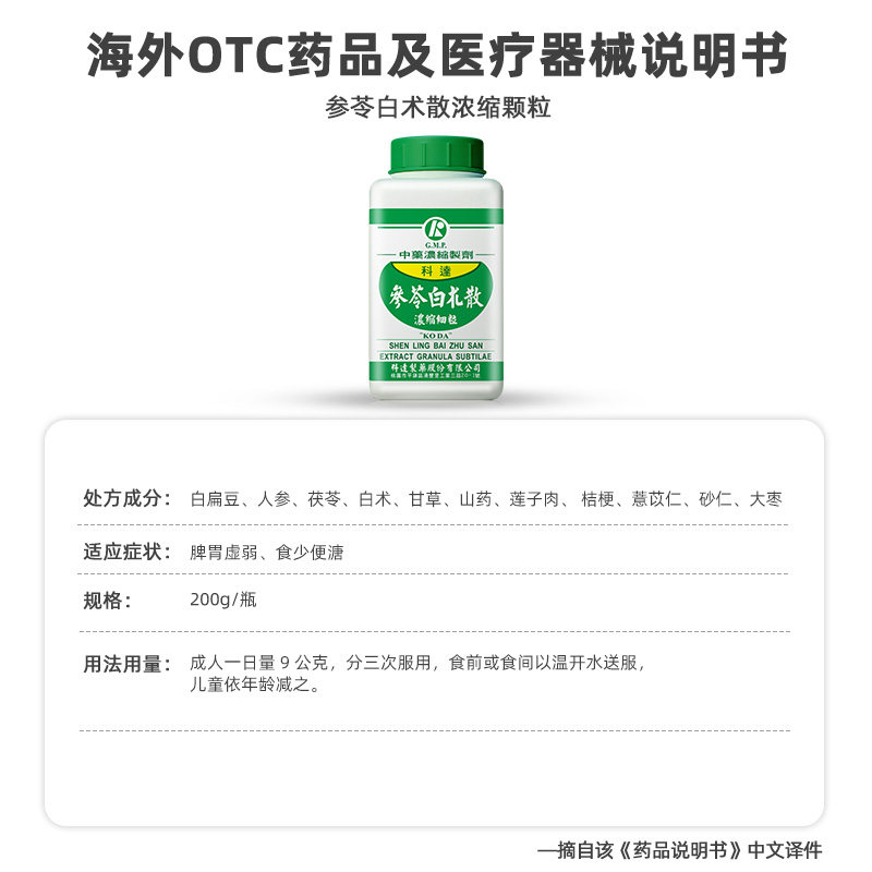 科达参苓白术散同仁堂中成药脾胃虚弱湿气重健脾祛湿中成药