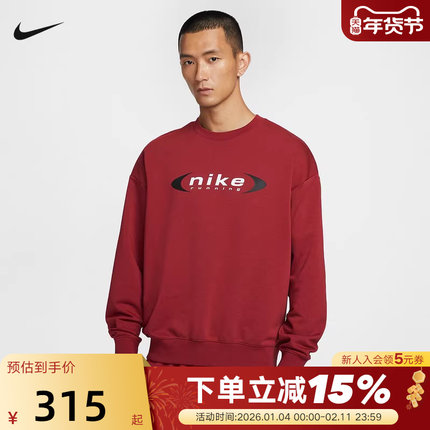 耐克卫衣男子上衣2026春季新款运动休闲红色圆领套头衫IQ1659-613