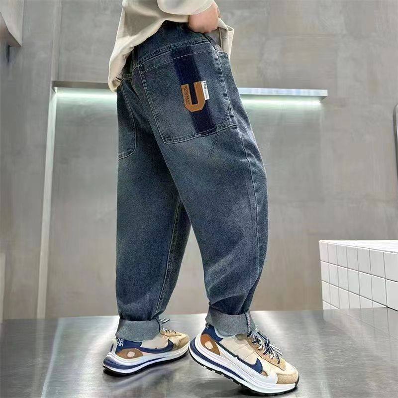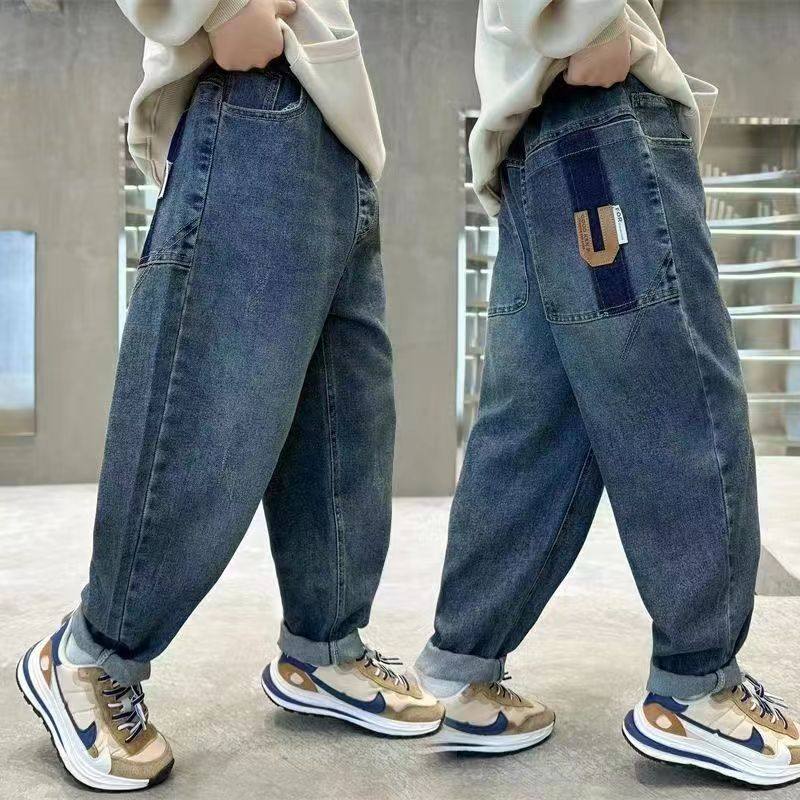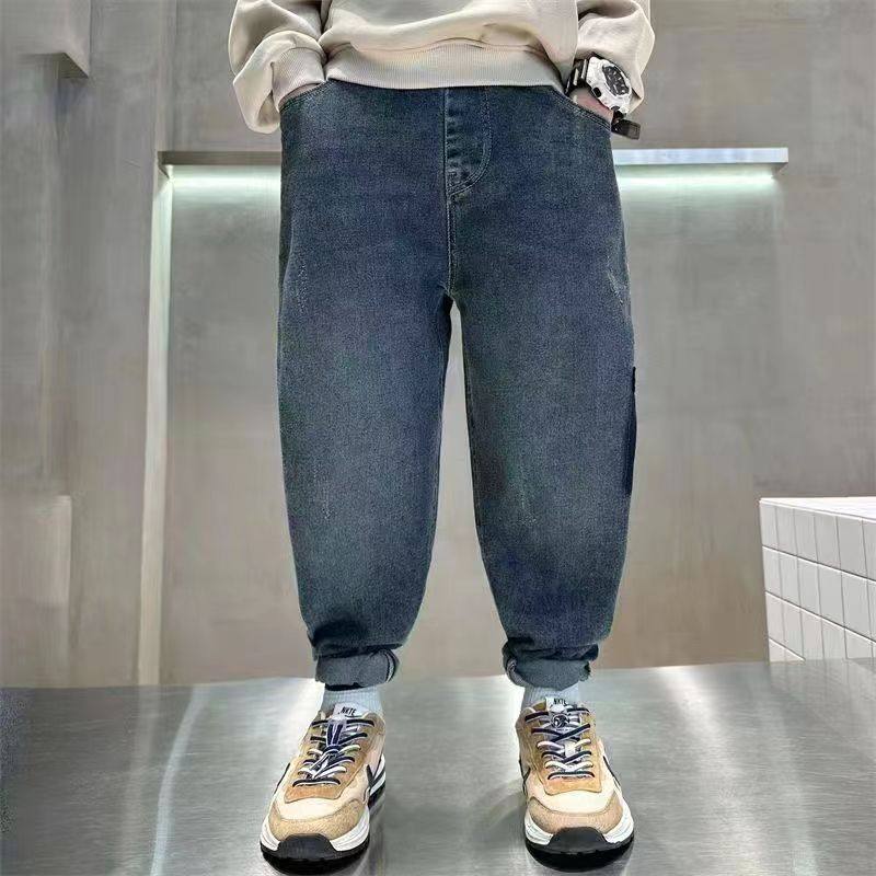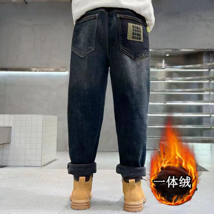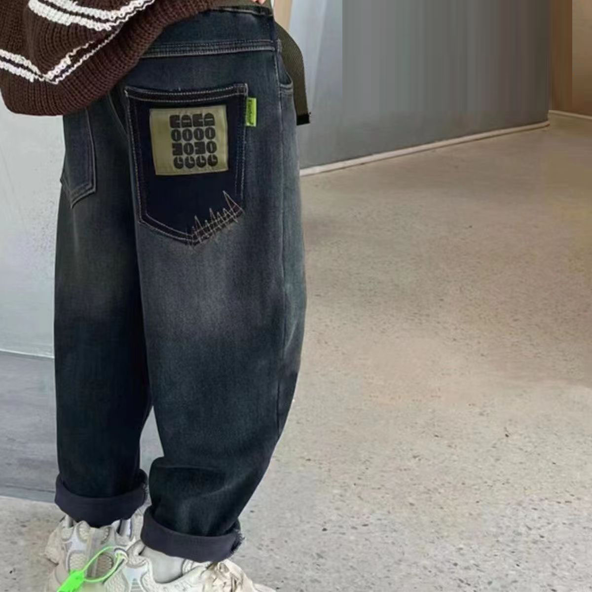 儿童裤子春秋款男童宽松牛仔裤大童休闲2025新款加绒一体绒长裤潮
