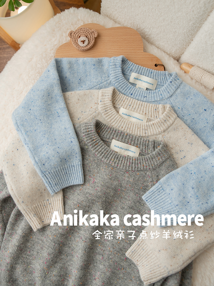 Anikaka男女童宝宝点纱100山羊绒毛衣套头长袖羊绒衫全家亲子装