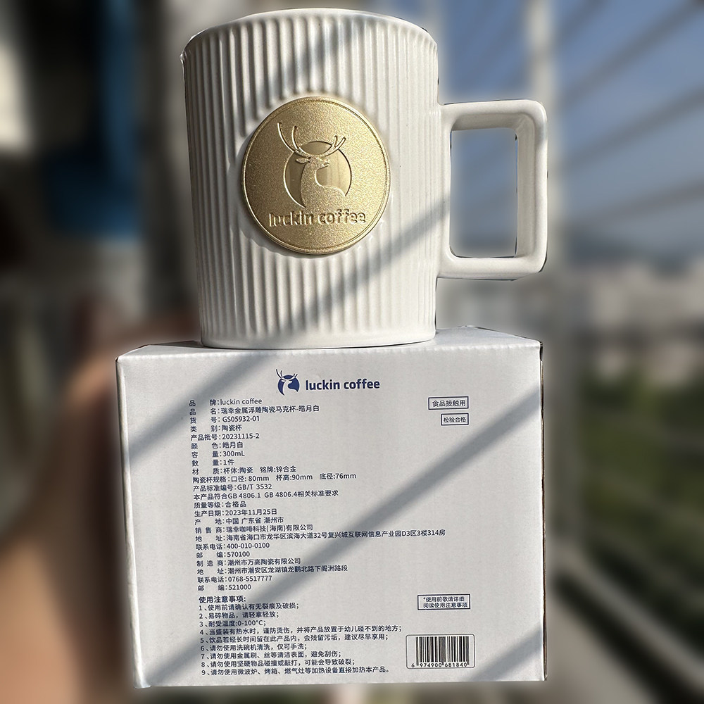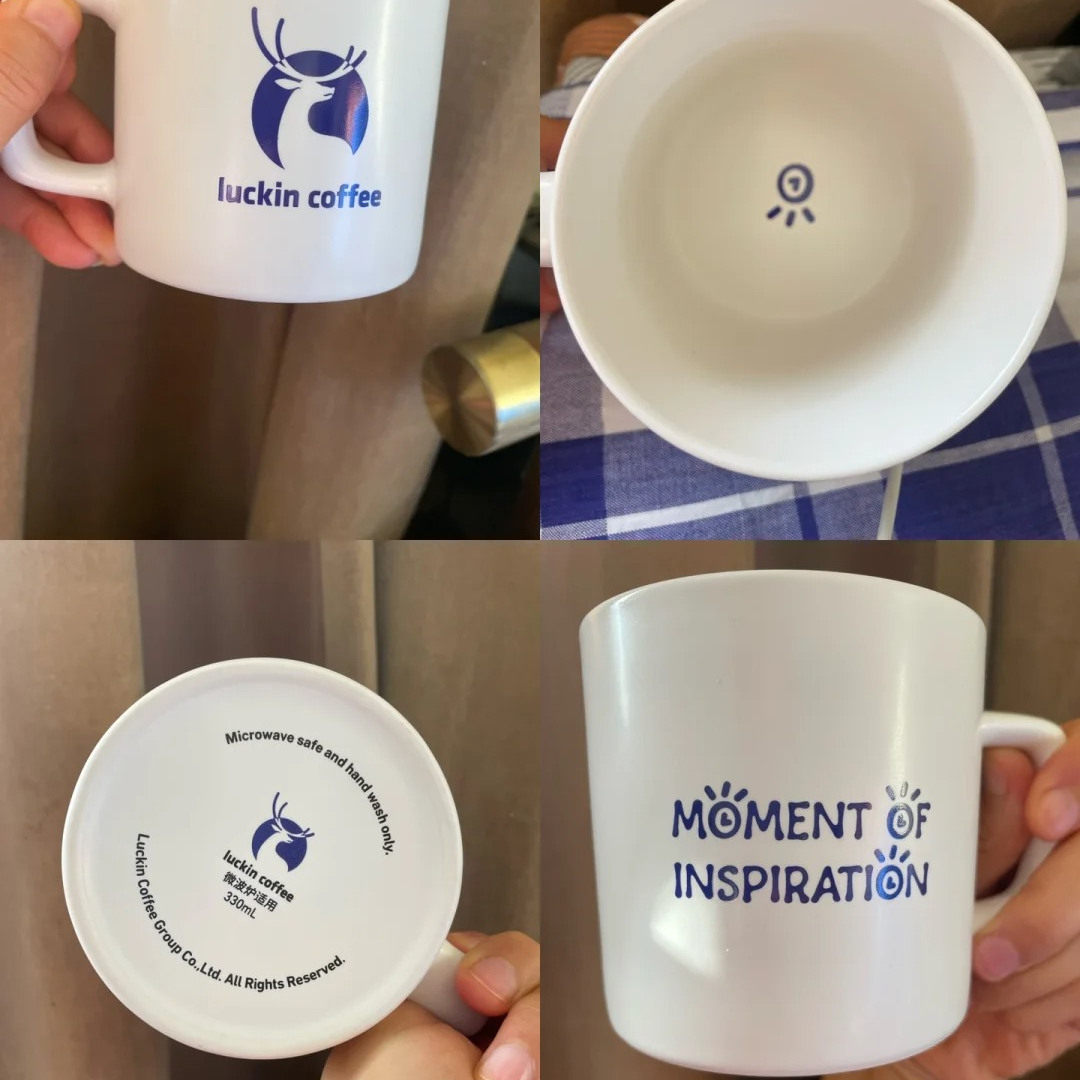 瑞幸马克杯咖啡杯陶瓷杯微波炉热变马克杯经典蓝色白色灵感复古杯