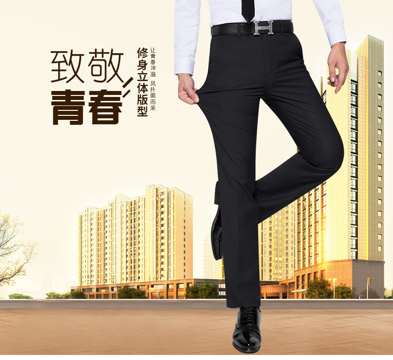 男士西裤商务正装直筒裤休闲西装裤长裤修身春秋薄款黑色西服裤子
