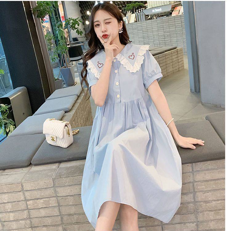 夏天短袖孕妇连衣裙怀孕期潮妈薄款中长款上衣孕妇装夏装宽松裙FS