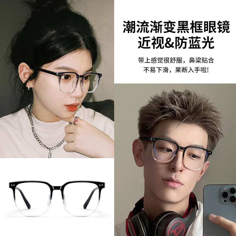 萊炫女素颜显脸小渐变黑色大框男