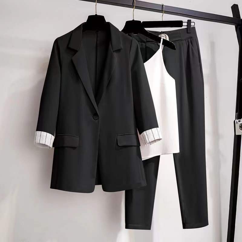 2025年新款春秋休闲百搭西装套装小香风三件套宽松西装领
