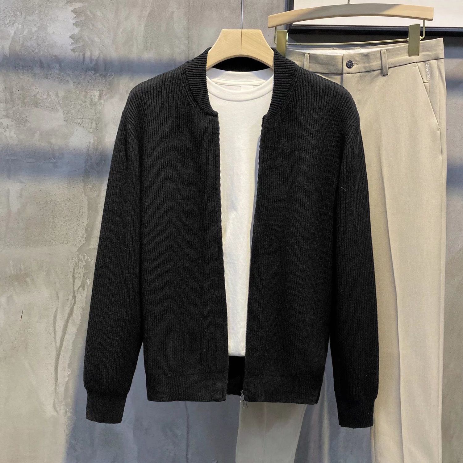 立领针织开衫外套男2024新款春秋季潮牌纯色拉链夹克男装毛衣褂子