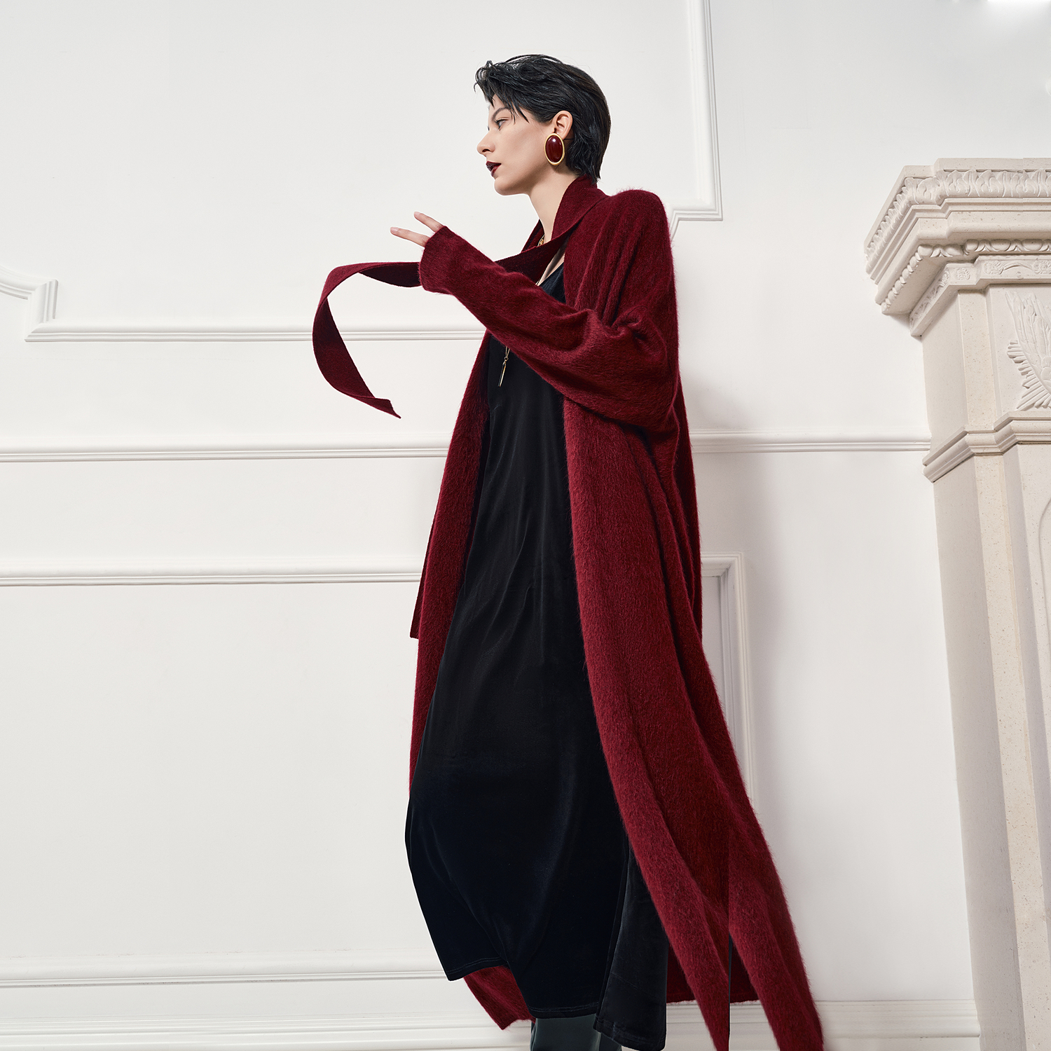 TU女装 1oo牦牛绒重工拉绒针织开衫2025冬季新款质感长款外套